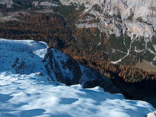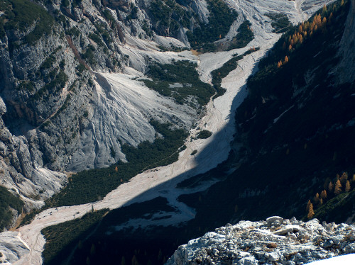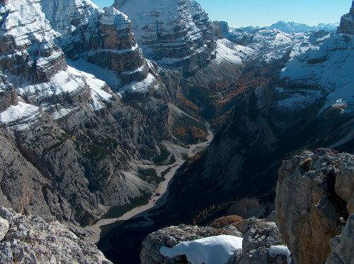 Tiefblick ins Travenazestal, fast 1000mt tiefer. Dort unten spielten sich