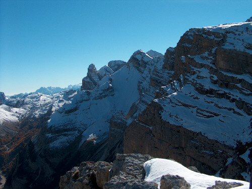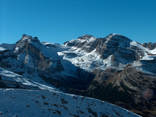 Die Kreuzkofelgruppe, ganz links läuft das Fanestal zum Valparolapass hin