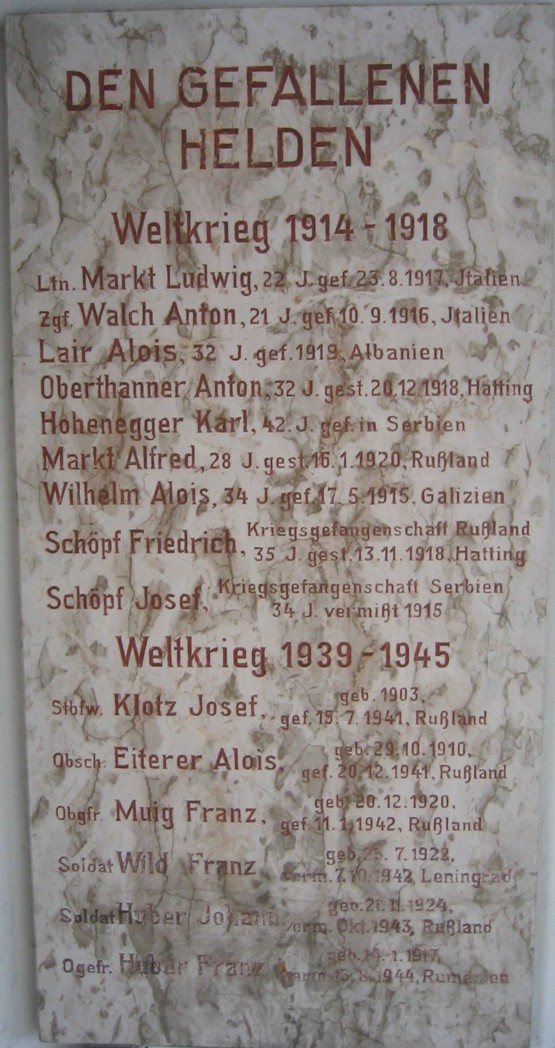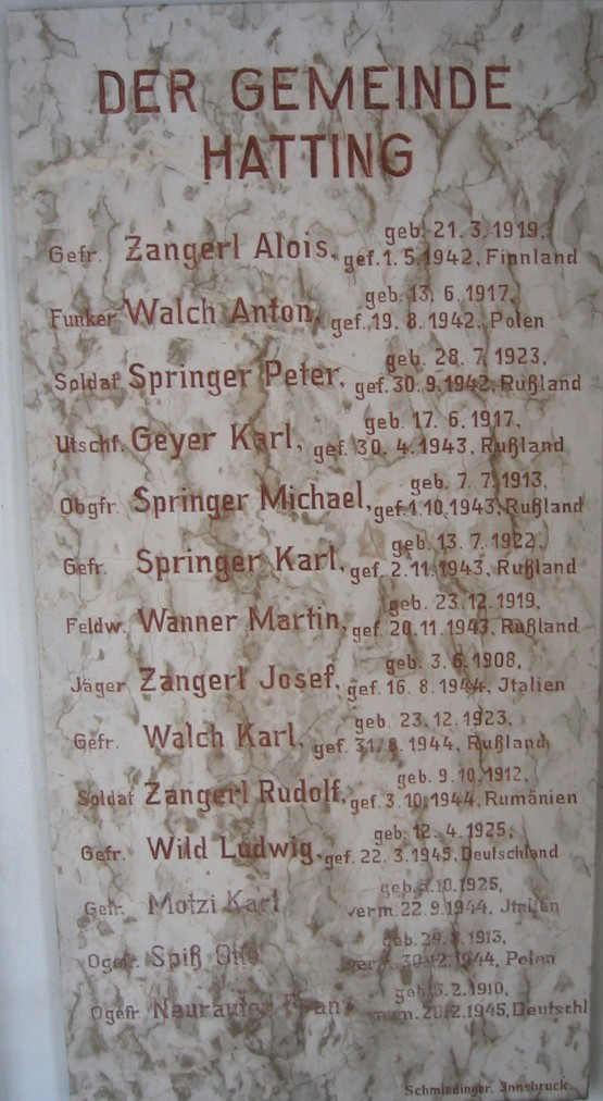 Kriegerdenkmal in Österreich Hatting / Inntal Ulrich Mößlang Optik