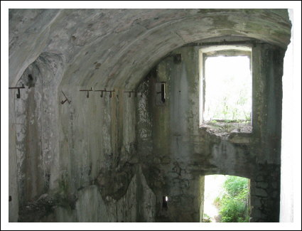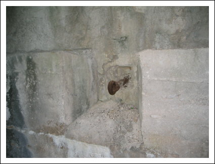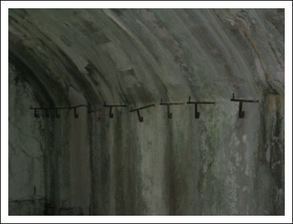 Gegenüber der Geschützkaverne sind im Gang große Eisenringe in die
