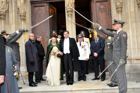 Am Samstag den 19 11 2011 nahmen die Kaiserschützen an der Hochzeit von Erzherzog Sandor von Österreich, Prinz der Toskana und Erzherzogin Herta Margarete von Österreich, Prinzessin der Toskana in der bis auf dem letzten Platz gefüllten MINORITENKIRCHE in WIEN teil. Nach der äußerst beeindruckenden Trauung marschierten wir durch das Ehrenspalier von Tausenden Zaungästen zum SAS-Palasthotel zum Galadiner.