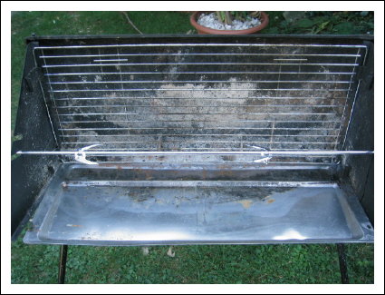 So sah der Grill nachher aus, das Blech und der Stab verrostet.