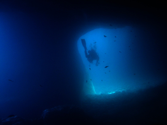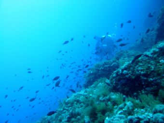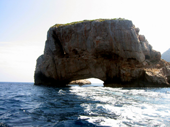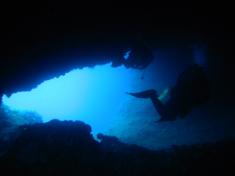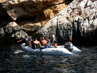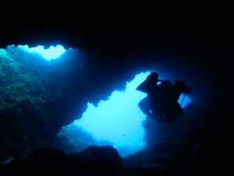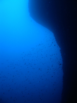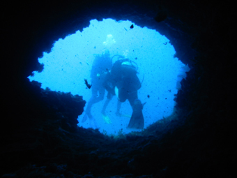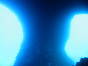 Islas Margaritas (Felseninsel) Die ca. 15 min von der Tauchbasis entfernte Insel liegt 1km von der Küste entfernt und ist nur mit dem Boot erreichbar. Die Ankunft mit dem Boot ist atemberaubend. Die steil aus dem Wasser ragende Insel wird durch einen Torbogen angefahren, unter dem auch der Ankerplatz liegt. An einem 12 m Plateau wird in Richtung Torbogen abgetaucht und in ca. 25 m Tiefe nach rechts in eine Höhle eingebogen, die unter der Insel durchführt. Auf der anderen Seite erstreckt sich eine 40 m tiefe, teils überhängende Steilwand, an der entlang getaucht wird. Um wieder zum Ankerplatz zu gelangen wird eine weitere Höhle benutzt, die am anderen Ende der Insel liegt.