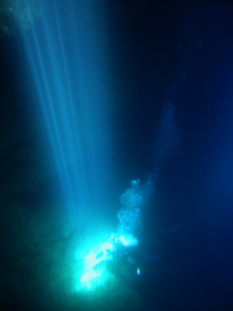 de la Luz ( Lichterhöhle) Die Lichterhöhle befindet sich 45 min Fahrzeit mit dem Schlauchboot entfernt. Diese Höhle ist mit Sicherheit einer der Top Spots in ganz Spanien und in der Zeitschrift Unterwasser zu den Top 100 Tauchplätzen der Welt gezählt worden. Die Fahrt dorthin ist zwar lang, aber es lohnt sich auf jeden Fall. Die Höhle liegt auf einer sonnen abgewandten Seite der Steilküste und ist nur auf dem Wasserweg zu erreichen. Um 12.00 Uhr scheint die Sonne durch die in der Höhle befindlichen Löcher in die Dunkelheit. Die Höhle ist in 10 m Tiefe, sehr groß und auch für unerfahrene Taucher kein Problem. Etwa 10 min entfernt liegt eine weitere beeindruckende Höhle, die Säulenhöhle, ebenfalls geräumig und atemberaubend.