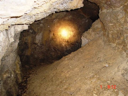 Aufnahmen der beiden im Steilhang eingebauten Stellungen der Geschütze Nr.1 und Nr.2, danach geht es durch die Hauptgalerie zurück. Ich zähle die Schritte, es sind 105. Also ca. 75 m Länge. Die Schrittweite ist nach alter Tradition 75cm. Danach befinde ich mich wieder in der 1.Batterie. zurück zur Galerie