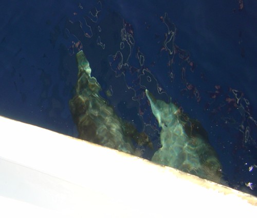 Delphine begleiten unseren Weg und spielen in der Bugwelle