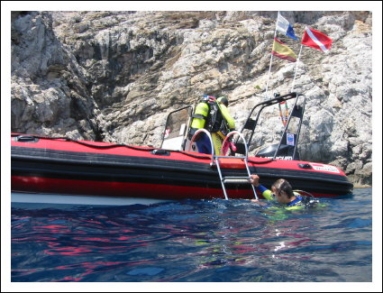 Jaime macht sich schon zur Bootsbesteigung bereit.