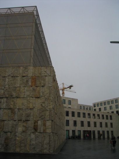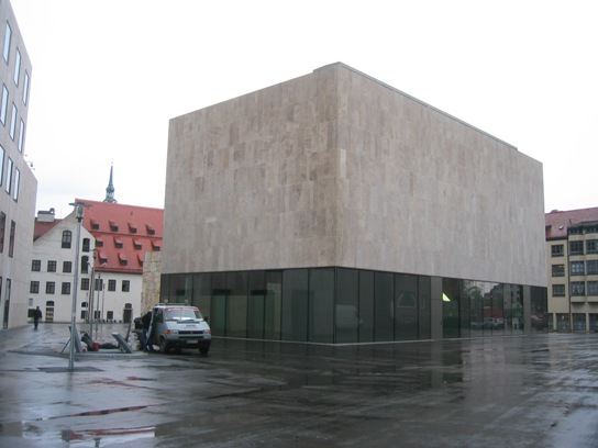 Über der durchaus gelungenen Bau wurde eifrigst Diskutiert und für super befunden, ob es auch der richtige Ort (Platz) für das moderne Bauwerk ist, wollen wir hier nicht weiter verfolgen. Jedenfalls fügt es sich nicht harmonisch in den mit altem Bestand, oder durch, mit vielen Auflagen neu gebauten Häusern, umgebenden Platz ein.