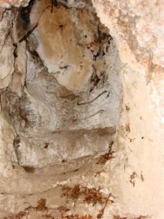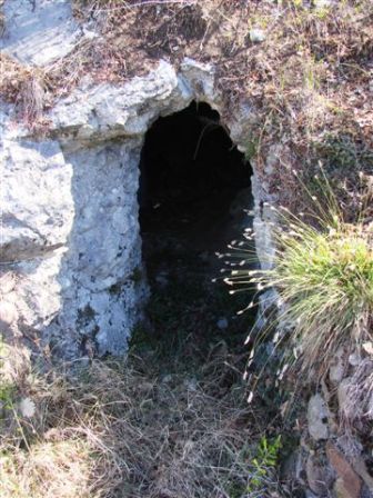 La seconda batteria aveva un´uscita che portava in trincea, si notano ancora i ferri della scala che va in alto. La caverna e abbastanza grande per armare la batteria con un cannone 9cm/M75, e pensabile anche l´armamento con una sola mitra. Die zweite Kavernenbatterie hatte einen rückwärtigen Ausgang, der nach oben führte, man erkennt noch die Steigeisen der Treppe. Die Kaverne ist groß genug für ein 9cm/M75 Flankengeschütz, eine Bewaffnung mit MG wäre aber auch denkbar. Gruss, VJ