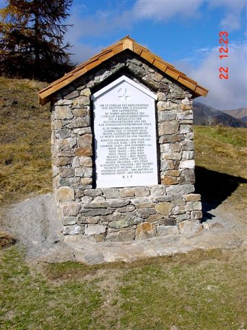 Neue und schöne Gedenktafel für die Lawinenopfer vom Februar 1916. Kaiserjäger, Artilleristen und Standschützen waren die Opfer. Demnach war die Stellung Kleinboden also besetzt. Aber warum? - Die Front war viel weiter vorne zu der Zeit. Stellung einer evt. 2. Linie? - Die dort installierten altartigen Geschütze hatten nicht die ausreichende Tragweite als Unterstützung dienen zu können. VJ