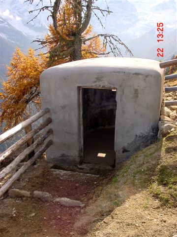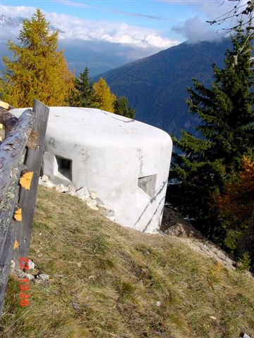 Die kleine Kasematte wurde renoviert. Sie war vorher schwarz angestrichen. Derartige Kasematten kannte ich ebenfalls bis heute nicht. Sie war lediglich ein splittersicherer Unterstand. Die Bauform ist aufwendig. Allein schon aus Kostengründen (das Budget war immer knapp!) baute man derartige Kasematten wesentlich einfacher. Hier kosteten die Schalungsarbeiten mehr als der gesamte Stampfbeton. VJ