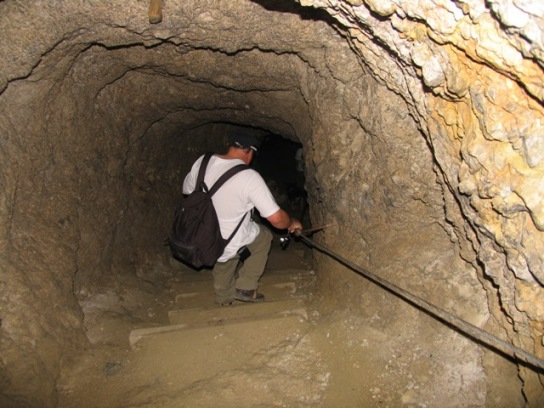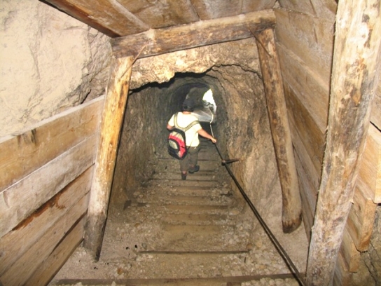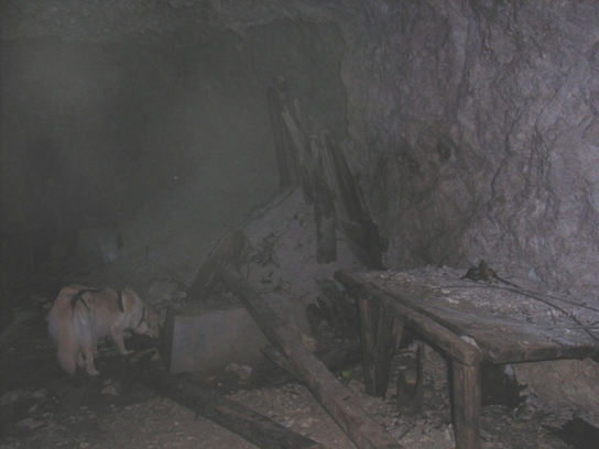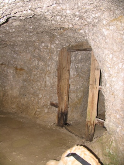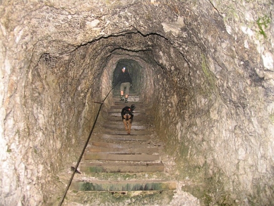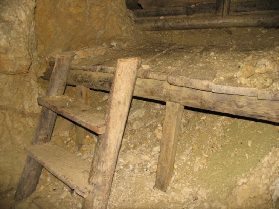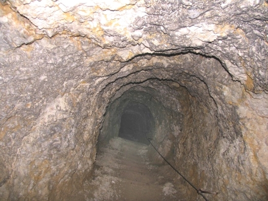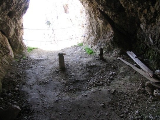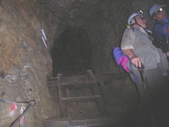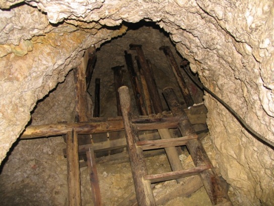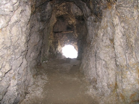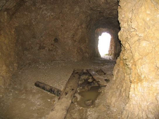Der Untere Teil des Lagazouistollen hinab bis zum Felsband, dem ältesten Teil der