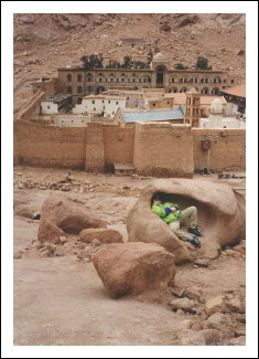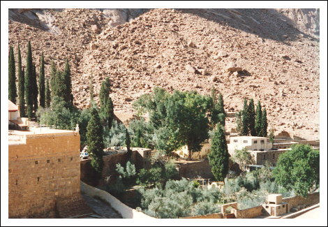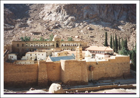 Katharinenkloster Eine schöne Ausflugsfahrt die in jedem Hotel angeboten wird. Die Busse sind klimatisiert und bequem. Nach langer Fahrt durch die wunderschöne Wüstenlandschaft hält der Bus am Parkplatz des Klosters. Der Fußmarsch zum Kloster dauert ca. 10 Minuten. Den winzigen Eingang übersieht man fast. In der Kirche ist das Fotografieren mit Blitz verboten. Den besten Überblick über die Klosteranlagen erhält man vom Berg gegenüber. Nach einem kleinen Aufstieg über die glatten lustig geformten Felsen hat man eine schöne Aussicht. Im Hintergrund des Tals erhebt sich der Berg Moses. Eine Besteigung dauert ca. 3 Stunden und ist in der Nacht wegen der Hitze ratsam. Am kalten Morgen wird man mit einem wunderschönen Sonnenaufgang belohnt. In den Schotterhängen finden sich oft schöne Kristalle. Wenn man den Tagesausflug mit einem eigenen Taxi angetreten hat ist ein Ausflug nach Dahab und nach Nabq ohne größere Probleme möglich. Beliebige Haltepunkte für Fotos sind so möglich. Wichtig ist, die Fahrstrecke und den Preis vor Fahrantritt auszuhandeln. |