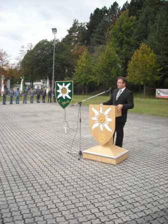 Kommandoübergabe am 30 03 2010 bei der 6 Jägerbrigade in ABSAM an Brigadier Mag. Peter GRÜNWALD. Die 6. Jägerbrigade ist die Gebirgsbrigade unseres Heeres mit Garnisonen in VORARLBERG –TIROL-SALZBURG und KÄRNTNEN. Hohe Vertreter aus der Politik und Militärs aus dem gesamten Bundesgebiet und der Bundeswehr und viele weitere Ehrengäste sowie Abordnungen aller Bataillone mit ihren Fahnen gaben diesem Festakt einen feierlichen Rahmen. Bundesminister für Landesverteidigung und Sport Mag. Norbert DARABOS, Landeshauptmann von Tirol Günther PLATTER, Generalmajor Mag. Herbert BAUER Militärkommandant von Tirol. Der Kaiserschützenbund TIROL 1921 nahm mit dem Bundesobmann und der Ortsgruppe INNSBRUCK teil. Der Bundesobmann GÄRTNER Hans-Peter, Major