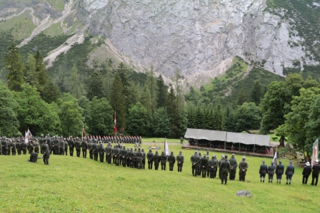 Auf Einladung des Kommando Gebirgskampf nahm der Kaiserschützenbund Tirol 1921 mit einer Fahnenabordnung vor der beeindruckenden Bergkulisse des Halltales an der Kommando Übergabe des Kommandos Gebirgskampf teil .Viele Ehrengäste aus der Politik darunter in Vertretung des LH von Tirol, Landesrat Mag. Johannes TRATTER sowie der Kommandant der Landstreitkräfte Generalleutnant Mag. Franz REISSNER und zahlreiche höchste Militärs aus ganz Österreich nahmen an diesem Festakt teil. Die Kommandoführung über das Kommando Gebirgskampf wurde von Oberst Wolfgang WEICHSELBERGER an Oberst Johann GAISWINKLER übergeben. In den Ansprachen wurden u.a. die Alleinstellungsmerkmale der österreichischen Gebirgstruppe im internationalen Vergleich hervorgehoben. Der neue Kdt Oberst Johann GAISWINKLER unterstrich in seiner Ansprache die Wichtigkeit der Gebirgstruppe und die Verstärkung des Kommandos Gebirgskampf ab 2019 mit zwei weiteren Bataillonen. Das Kommando Gebirgskampf gliedert sich in das Kommando mit Sitz in ABSAM, eine Führungsunterstützungskompanie, eine Nachschub-und Transportkompanie, eine Werkstattkompanie in Innsbruck sowie einer Jägerkompanie in St. Johann in Tirol. Dem Kommando unterstellt sind das Gebirgskampfzentrum, einschließlich dem Tragtierzentrum in SAALFELDEN und HOCHFILZEN das Jägerbataillon 24 in LIENZ, das Jägerbataillon 26 in SPITTAL an der Drau und das Pionierbataillon 2 in SALZBURG. Der Kaiserschützenbund Tirol 1921 ist der Traditionsnachfolger der Kaiserschützen jener Elite Hochgebirgstruppe der k. k. ARMEE, wir wünschen dem neuen Kommandanten des Gebirgskampfzentrum Oberst Johann GAISWINKLER, viel Soldatenglück.