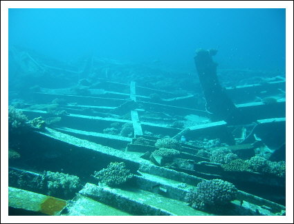 eingeleitet. Dabei taucht man am Besten über dem Wrack, aber nicht bei