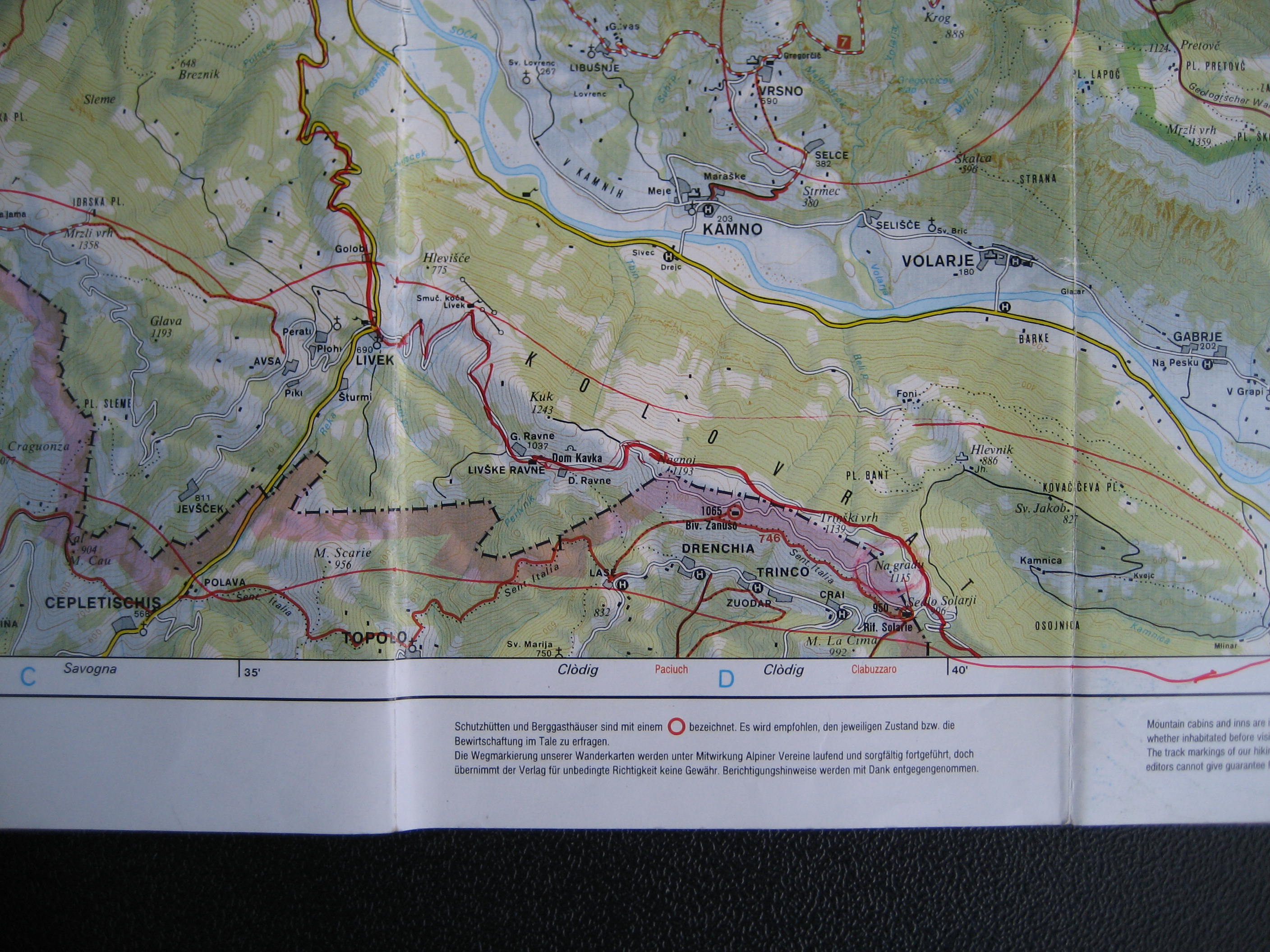 Karte der ersten Kampflinie Krasji Vrsic