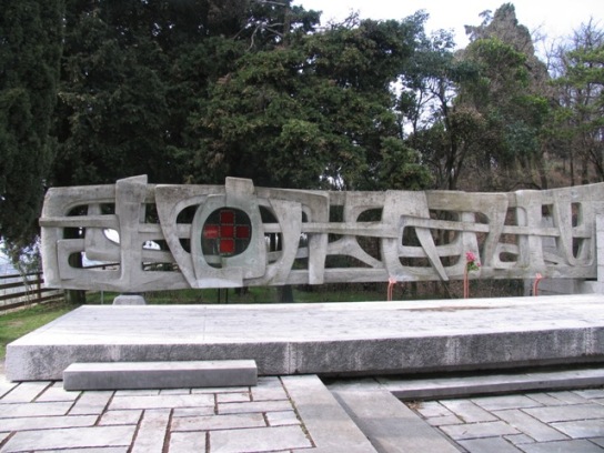 Durch den Torbogen geht es zur Gedenkstätte des roten Kreuzes.