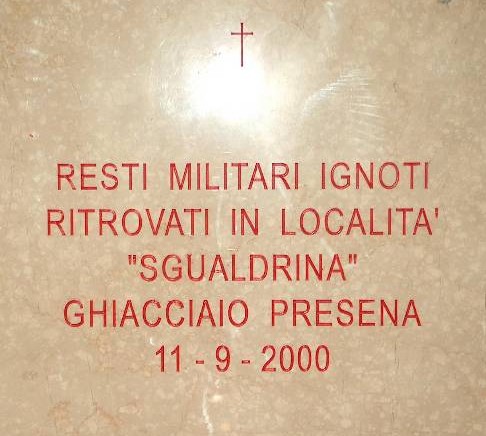 Reste von unbekannten Soldaten bei "Sgualdrina" Presena Gletscher am