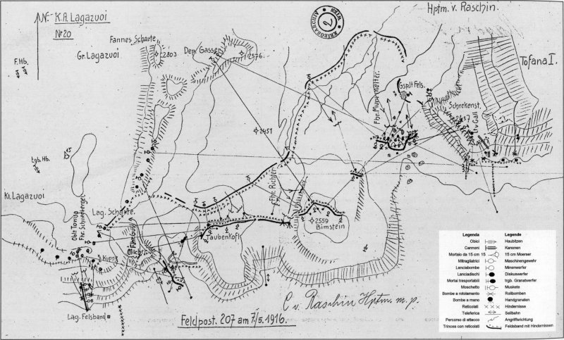 des kl. Lagazoi bis zum Werk Tra i Sassi (das im Herbst-Winter 1915 durch