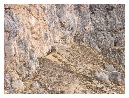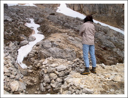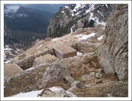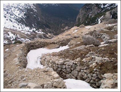 Laufgraben der Vonbankstellung mit Blick auf die Falzaregopassstrasse