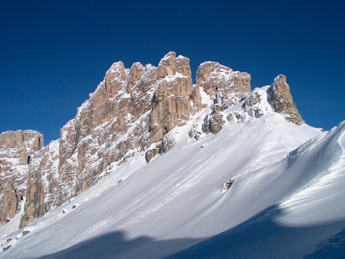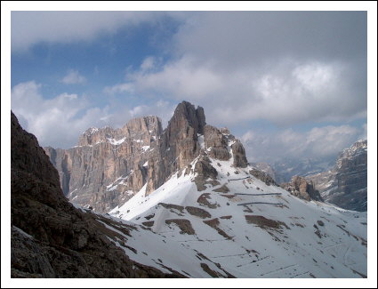 Die 3 Tofanen, rechts die Tofana di Rozes. Vor den Tofanen ist das