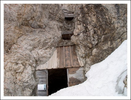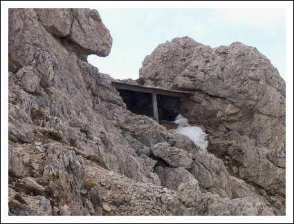 Eingang in die Kampfkavernen am Vorgipfel, dort ist auch das Fiat MG