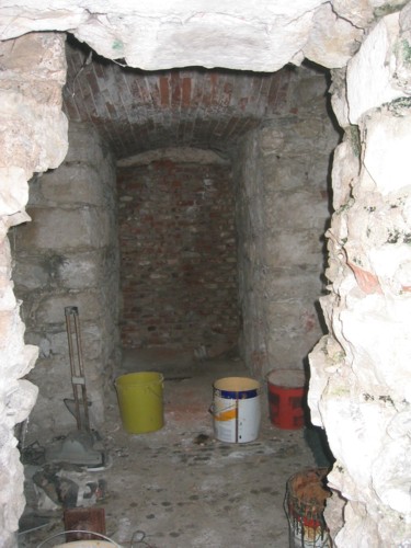 Blick in dem kleinen Raum im Koffer. Im Hintergrund der jetzt vermauerte