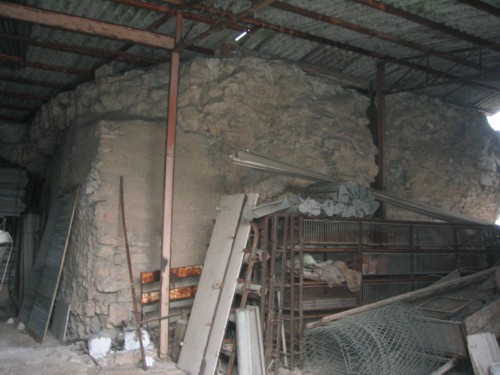 Im Hintergrund die Treppe zum Wall und zum Dach.