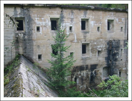 Deutlich sind die gemauerten Stellungen zu erkennen.