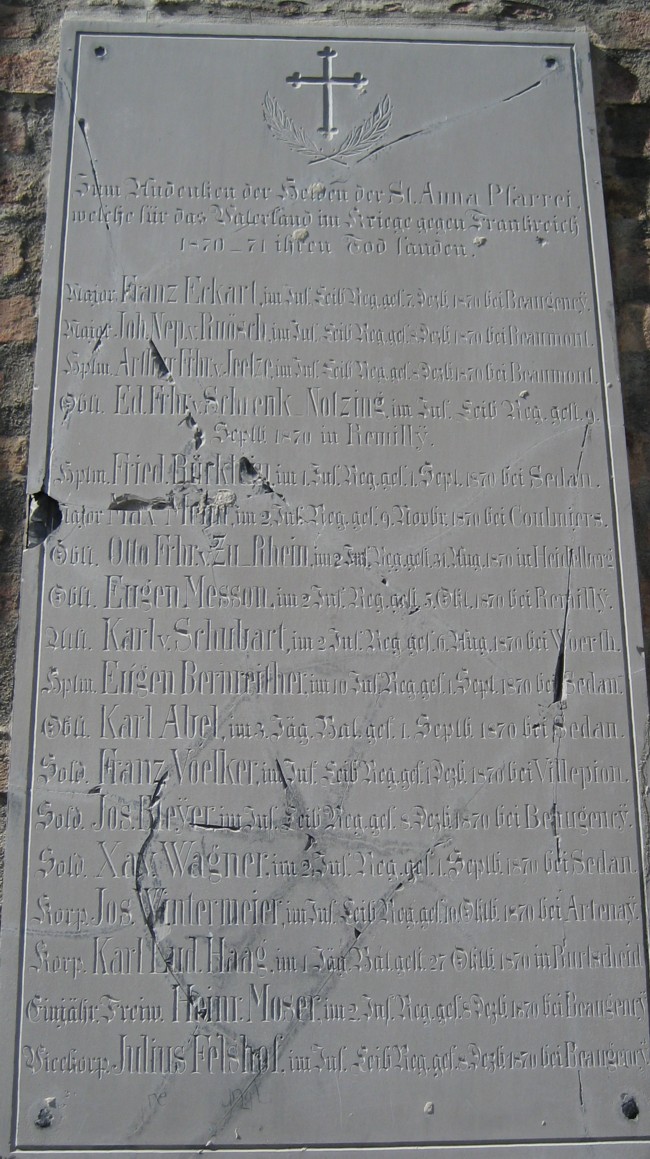 Kriegerdenkmal zum ersten Weltkrieg Stadtpfarrkirche St. Anna München Lehel Frankreich 1870/71 Ulrich Mößlang Optik