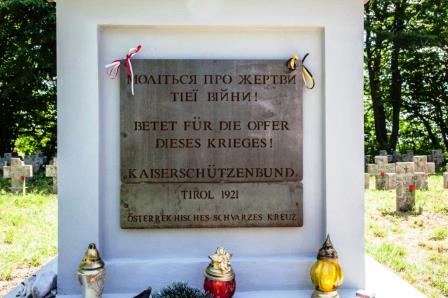 I Ukraine Soldatenfriedhof nach Renovierung feierlich eingeweiht! Am Samstag den 10 Juni 2017 wurde der auf Initiative des Kaiserschützenbundes Tirol 1921 renovierte Soldatenfriedhof von Shovtanzi in Zhovtantsyamy Remenovom in der Nähe von Lemberg feierlich eingeweiht. Die schweren Kämpfe im Raum Lemberg forderten zahlreiche Opfer, so ruhen dort im Tod friedlich vereint Soldaten aus Ö.U. aus Deutschland und aus Russland. Die Heilige Messe und die Segnung der Gräber erfolgte durch den örtlichen Priester. Die Ansprache wurde vom Bürgermeister des Ortes vorgenommen. Eine große Delegation der örtlichen Garnison an der Spitze mit seinem Kommandanten gaben uns die Ehre. Durch die Unterstützung unseres Kaiserschützenkameraden Renzo Pellegrini und durch die Landegeschäftsführer des österreichischen Schwarzen Kreuzes für NÖ u. Wien Herrn Ing. Otto Jaud und von Vorarlberg Herrn Prof. Oberst Erwin Fitz, konnten wir dieses Projekt zum Gedenken an die Opfer und zur Mahnung zum Frieden an die Lebenden verwirklichen. Mit einem Gebet für den Frieden in der Ukraine endete diese Gedenkfeier. Mit Tiroler Kaiserschützengruß der Bundesobmann des Kaiserschützenbundes Tirol 1921: Hans-Peter Gärtner Vzlt i. R. Bundes - Major