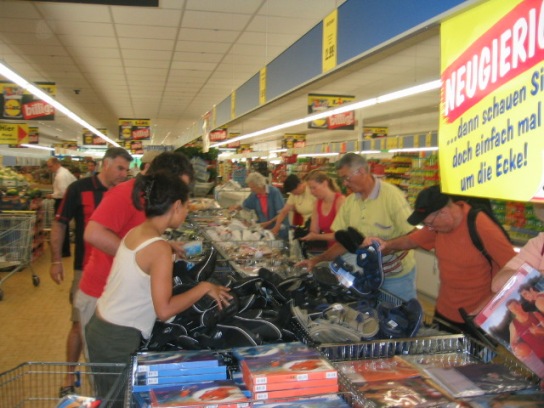Auf dem Förderband vor der Kasse traf sich die Tauchgemeinde wieder.