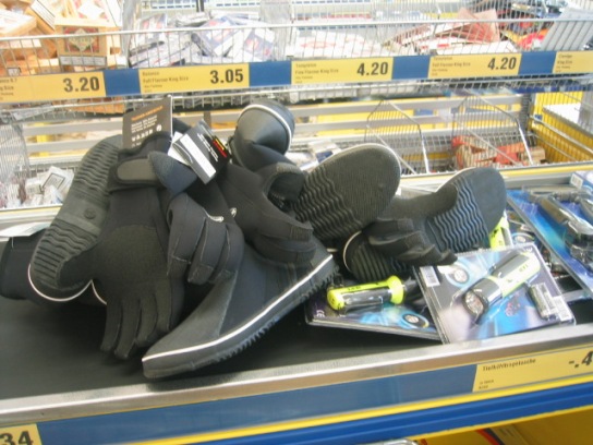 Fast jeder will sich einen Tauchanzug, Schuhe und Handschuhe sichern