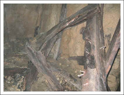 Die Poterne geht an Balkenresten vorbei