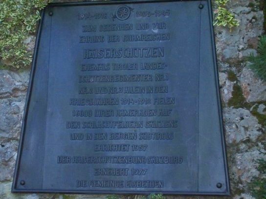 in Österreich errichtet vom Kaiserschützenbund Salzburg am Maderegg / Gaisberg in der Gemeinde Elsbethen bei Salzburg