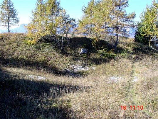 n dieser Senke standen gedeckt gegen den Feind die Geschütze, im