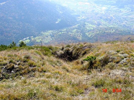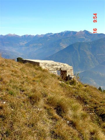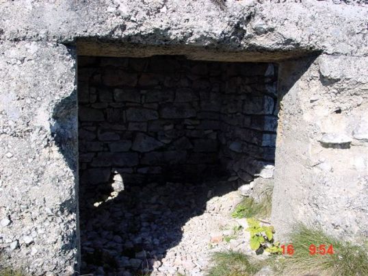 Der Südgipfel des Marzola auf einer Höhe von 1735m. Stellungen und Schützengraben im Gipfelbereich, die MG-Kasematte mit einer 2.fachen Betondeckenschichtung. Untere 1.Schicht ist ca. 30cm Stahlbeton (siehe Fotos), die obere Decke ist ca.30cm Stampfbeton. Die Stahlmattenarmierung war handgeflochten. VJ