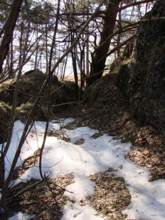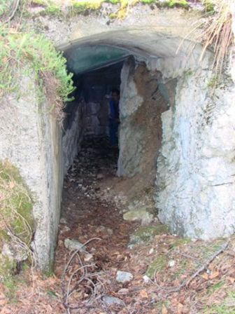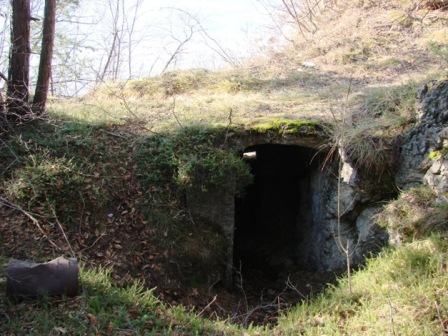 Batterie oberhalb Maso Specchio sopra. Auf der alten Armierungsstraße die von Martigniano über Monte Vacino zum Werk Casara führte liegt oberhalb des Steinbruchs diese feldmäßige Befestigung, vermutlich eine weitere Batterie mit Beobachtugskasematte. Auf dieser Straße geschah 1887 auch ein Mord. Diese "Batterie" wird ohne taktisches Zeichen auch in der Karte von GM Steinhart aufgeführt. Hinter den Stellungen liegen 2 große Kavernen mit dem Datum 1915.In einer Kaverne ist sogar noch der Herd/Heizofen.Die Erkundung machte ich mit meinen beiden sehr ortskundigen Freunden Mario Moser und Alberto Mattedi aus Gardolo rispektive aus Lavis. La prima batteria e´situata sopra il maso Specchio e sopra la cava. Una volta la strada militare proveniente da Martigniano passava nella cava per andare a Monte Vacino e il forte Casara. Direttamente sulla strada esiste la casamatta d´osservazione, probabilmente i resti di una batteria comunque con 2 grande caverne collegate fra di loro. In una c´e ´ancora la stuffa/cucina. Su questa vecchia strada (oggi sconosciuto) si trova anche una lapide che riccorda un omicidio del 1887. Le caverne furono costruite nel 1915. La batteria e´nominata nella carta del maggiore generale Steinhart ma non ha segno tattico.La gita ho fatto con i miei amici Mario Moser e Alberto Mattedi die Gardolo e Lavis.