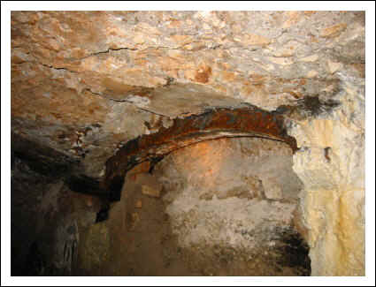 Links an der Wand ein abgeschweißter Eisenbogen.