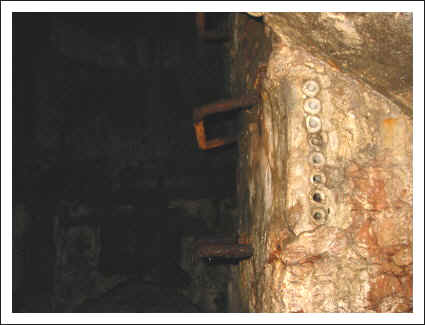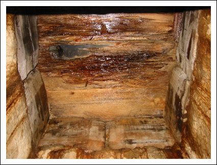 oben mit dicken Holzbalken zu erkennen.