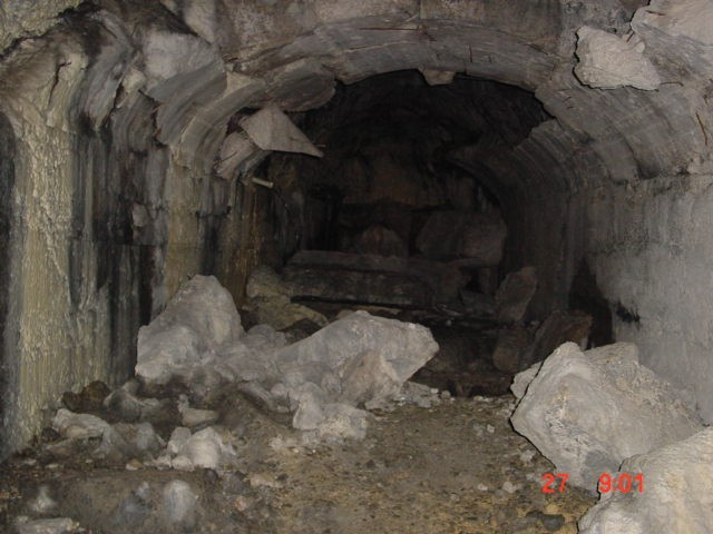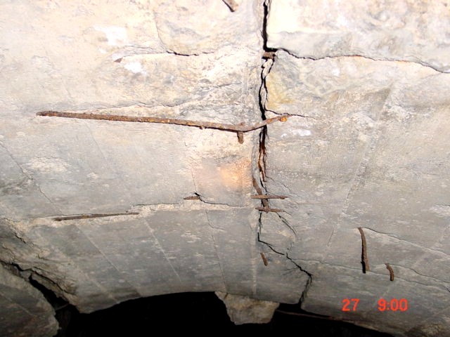 2007 diese Aufnahme verdeutlicht sehr gut den Zusammenhalt durch Armierung des gesprengten Gewölbes, die Arbeit der Eisenerückgewinnung war zu langwierig und mühsam, man gab auf.