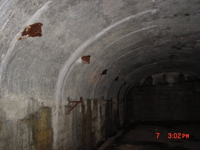 Danach wurden Betontreppen angelegt, die in die Kavernen hinab führten. Die Anlagen sind komplett erhalten, lediglich die Stahlträger, welche die abgehängten Blechdecken hielten, wurden herausgebrannt. Die Trägerstummel sind