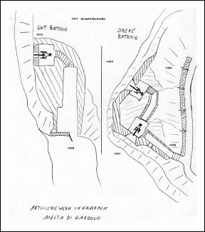 Zusammen mit der höher gelegenen Batterie in Betonbunkern, Sabionare dei Bolleri, schloß dieses Werk den Verteidigungsring um Trient, auf der Nordseite der Stadt Trient. Mit diesem Kavernenwerk beginnt der östliche Verteidigungsbereich. Es liegt am Fuße des nordwestlichen Hanges des Monte Calisio. In diesem Bereich begann auch die wichtigste Versorgungsstrasse für die Festung Monte Calisio,"Sabionare" genannt. Gardolo feldmäßige Befestigungen