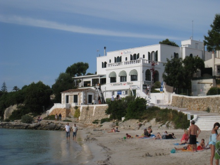 Die flache naturbelassene Sandbucht eignet sich zum Relaxen für die ganze Familie und auch für Nichtraucher. Egal ob Liegestühle mit Sonnenschirm oder nur ein Badetuch, Platz hat jeder ausreichend. Die in die Felshöhlen gebauten Kioske bieten sämtliche Erfrischungen und Snacks ohne lange Wege an. Die Küche, unter Schweizer Leitung von Erich Wasserfallen, ist hervorragend und lädt abends zum sagenhaften Sonnenuntergang auf der Speiseterrasse, mit kühlem Bier und heimischen Weinen, zum Verweilen ein. Die Fischgerichte die man sich aus der großen Fischplatte aussuchen kann, sind als einmalig zu bezeichnen, optisch und geschmacklich nicht zu verbessern.
