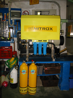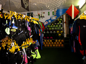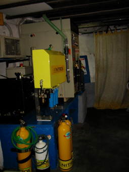 Der großzügige Ausrüstungsraum, im Hintergrund die gefüllten Flaschen in