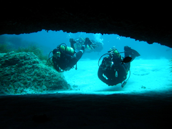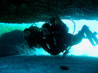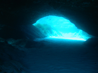 Tauchgang in der Kathedrale. Hier herrscht absolute Dunkelheit. Ein Betauchen