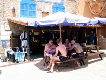 Der gemütliche Treffpunkt zwischen den Tauchgängen neben der Basis unter