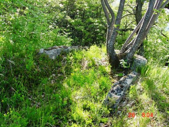 Die MG-Stellung liegt bei der Beobachterposition, ca. 25m in Richtung Süden. Genau unter der MG Stellung ist auch die Scharte des kavernierten Geschützes.