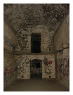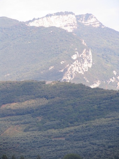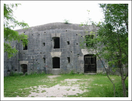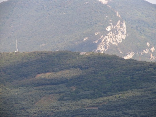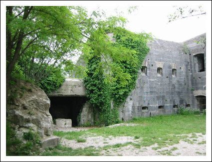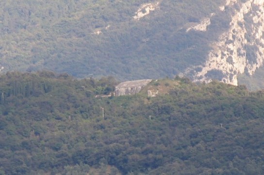 Von der Straßenkreuzung nach dem Werk Garda geht man lange den einfachen, sonnigen, geteerten Weg zur Mittelbatterie, wenn man nicht einen Freund mit einer Zufahrtsgenehmigung hat. Vielen Dank an meinen Freund Franco Meneghelli für den Pendeldienst. Wenn man die erschöpften Gesichter der radelnden Familien sieht, kann man erst erkennen wie angenehm sich die Tour im Auto machen lässt. Der zweite Weg zum Werk geht vom Dach des Werk´s Garda, an einem Beobachtungsturm vorbei, immer am Grad des Monte Brione entlang. Da ist Vorsicht geboten, kommen doch die Radelprofis diesen Weg über Wurzeln und Stufen herabgefahren und sind zu sehr mit sich selbst beschäftigt, um auf Wanderer Rücksicht zu nehmen. An der Kehlseite kann man das Werk durch ein Fenster problemlos betreten. Zur genaueren Erkundung ist eine Taschenlampe nötig. Vom Dach des Werks kann man die schöne Aussicht genießen. Das Werk Nago sieht man gegen Osten. Das Werk Tombio verbirgt sich hinter Bäumen auf dem Monte Tombio gegen Westen.